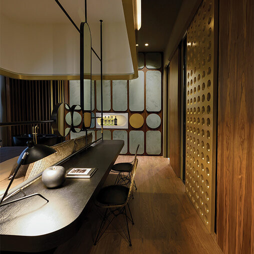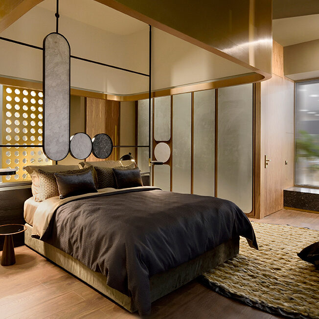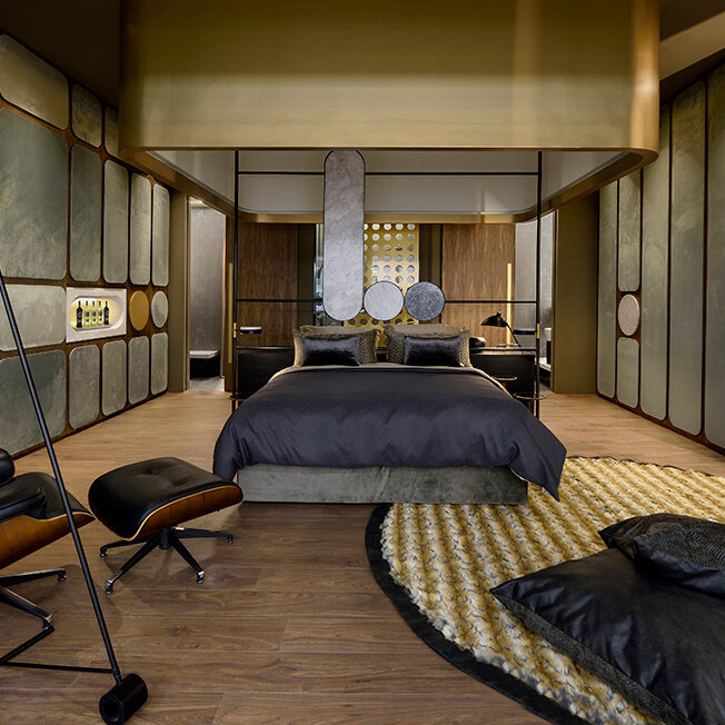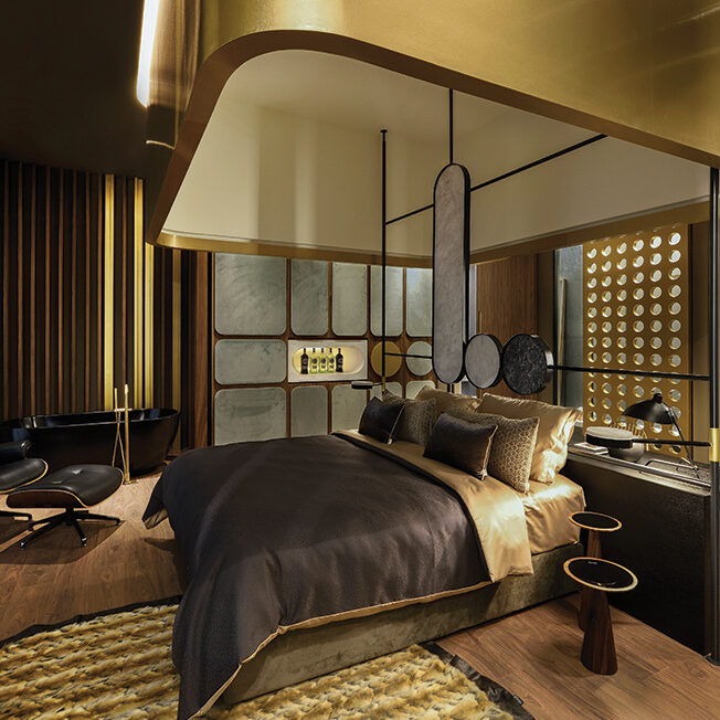 Το Future Boutique Hotel Room ήταν ένα εντυπωσιακό παράθυρο στο ξενοδοχείου του μέλλοντος. Μια αποτύπωση του πως διεκδικήσουμε τη φιλοξενία του μέλλοντος χρησιμοποιώντας υλικά και μεθόδους που δεν είναι απλώς σύγχρονες και μοντέρνες, αλλά πειραματικές. Μέθοδοι που διεκδικούν και δημιουργούν το ίδιο το μέλλον. Σε αρμονική συνεργασία λοιπόν με το αρχιτεκτονικό γραφείο “MINAS KOSMIDIS – Architecture in Concept” δημιουργήσαμε την εικόνα μιας πολυτελής σουίτας ενός ξενοδοχείου εμπνευσμένης από το μυστήριο, τις περιπέτειες, το χαρακτήρα του James Bond και του σύμπαν του έτσι όπως αυτό αποτυπώθηκε στις ταινίες του.