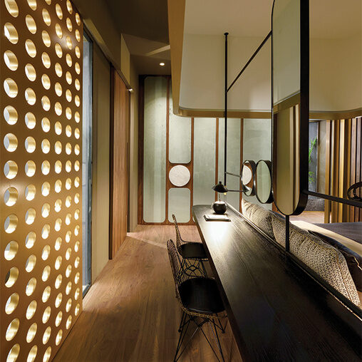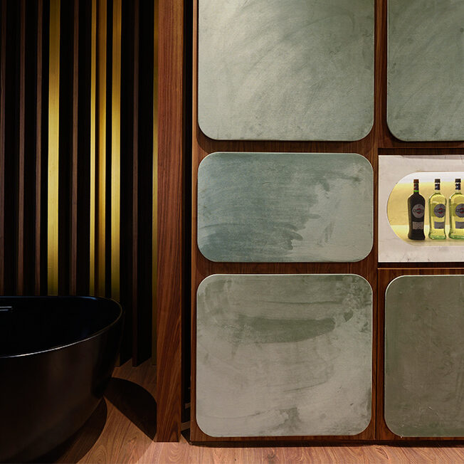 Στο πλαίσιο αυτού, δημιουργήθηκαν από την Vestal κομμάτια με την χρήση ιδιαίτερων υλικών – όπως βελούδινα υφάσματα, μάρμαρο, ξύλο καρυδιάς, μπρούτζος – και σε συνδυασμό με τη μουσική, την προβολή βίντεο αλλά και τον αρωματισμό του χώρου ο Μηνάς Κοσμίδης και οι συνεργάτες του επιχείρησαν να διεγείρουν τις αισθήσεις του χρήστη, να δημιουργήσουν το πλαίσιο για μία ολιστική ταξιδιωτική εμπειρία όπου το ξενοδοχείο από απλό κατάλυμα μεταμορφώνεται σε έναν πόλο ποικίλων λειτουργιών και εμπειριών.