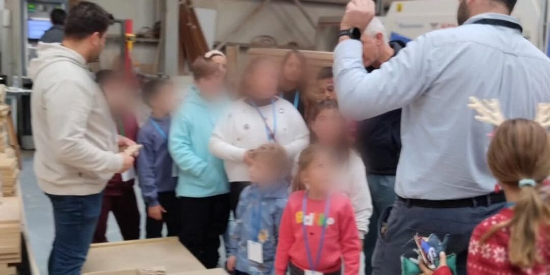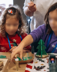 Στον σταθμό του CNC , τα παιδιά παρακολούθησαν τη διαδικασία κοπής ξύλου και πήραν μαζί τους το δικό τους ξύλινο χριστουγεννιάτικο δεντράκι, συνδέοντας τη σύγχρονη τεχνολογία με την έννοια της δημιουργίας.